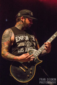 Following on from Carnifex, Deez Nuts (7) brought us firmly back into hardcore territory. Their brand of party loving hardcore might not be particularly clever but that doesn’t stop this crowd from throwing all kinds of shapes in the pit. The band use today as a chance to air plenty of new material from their latest album Word Is Bond, with the likes of What’s Up and Face This On My Own getting particularly good reactions. Still it’s the older material that gets the best reaction, especially a cool mash up of Like There’s No Tomorrow and I Hustle Everyday. Vocalist JJ Peters struts around the stage full of confidence the entire set while Matt Rogers and Sean Kennedy on guitar and base. They deliver everything you could want from a hardcore set but unfortunately there are were few moments where the energy just dipped too much. Still Band Of Brothers closed things in style with the biggest sing along of the day so far. SD