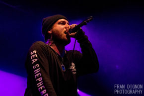 Taking to the stage for the final Impericon date, Stick To Your Guns (10) wasted no time in getting the entire room moving. Kicking their set off with ‘Nobody’, frontman Jesse Barnett’s vocals could barely be heard over the crowd’s intense singing. The floor literally shaking from the movement created, the band clearly impressed with the impression they’ve made, ‘What Choice Did You Give Us?’ ends as Jesse begins a speech.  Opening up about the way in which he thinks the world is messed up, a huge round of applause is given in agreement – “We support our fans, no matter what you’re going through, you’re not alone”. The heart wrenching ‘Amber’ and ‘Such Pain’ follow to keep emotions and excitement running high throughout the room. ‘Against Them All’ rounded off their set absolutely wonderfully – with an incredible atmosphere and the whole crowd singing in unison, the room felt like one big family and it was clear that they’d made a lasting impression on everyone. Stick To Your Guns once again taking to Impericon Fest with an absolutely flawless and incredibly emotional performance. KN